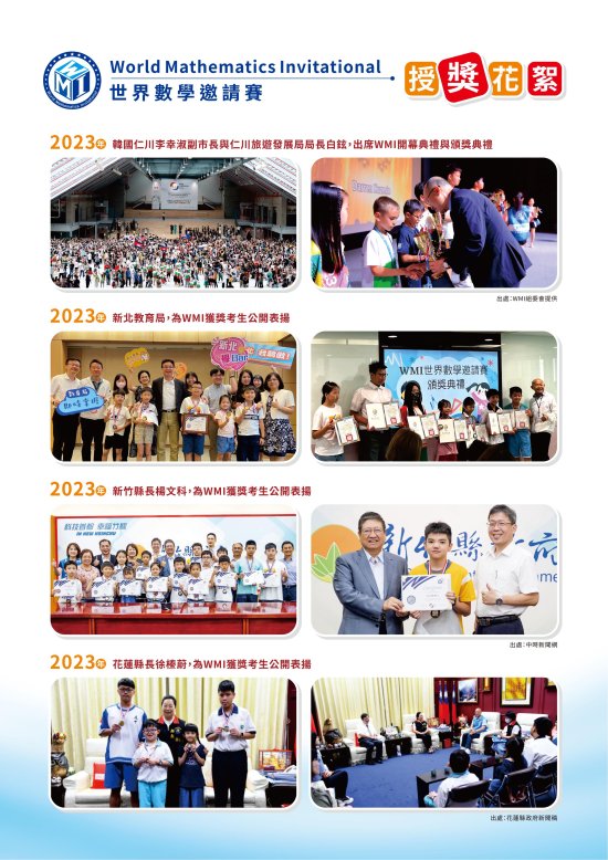 二、 | WMI世界數學邀請賽為第一個由台灣發起舉辦的國際性數學競賽,集合世界各地致力於數學推廣組織機構,每年將在不同國舉辦。 |
